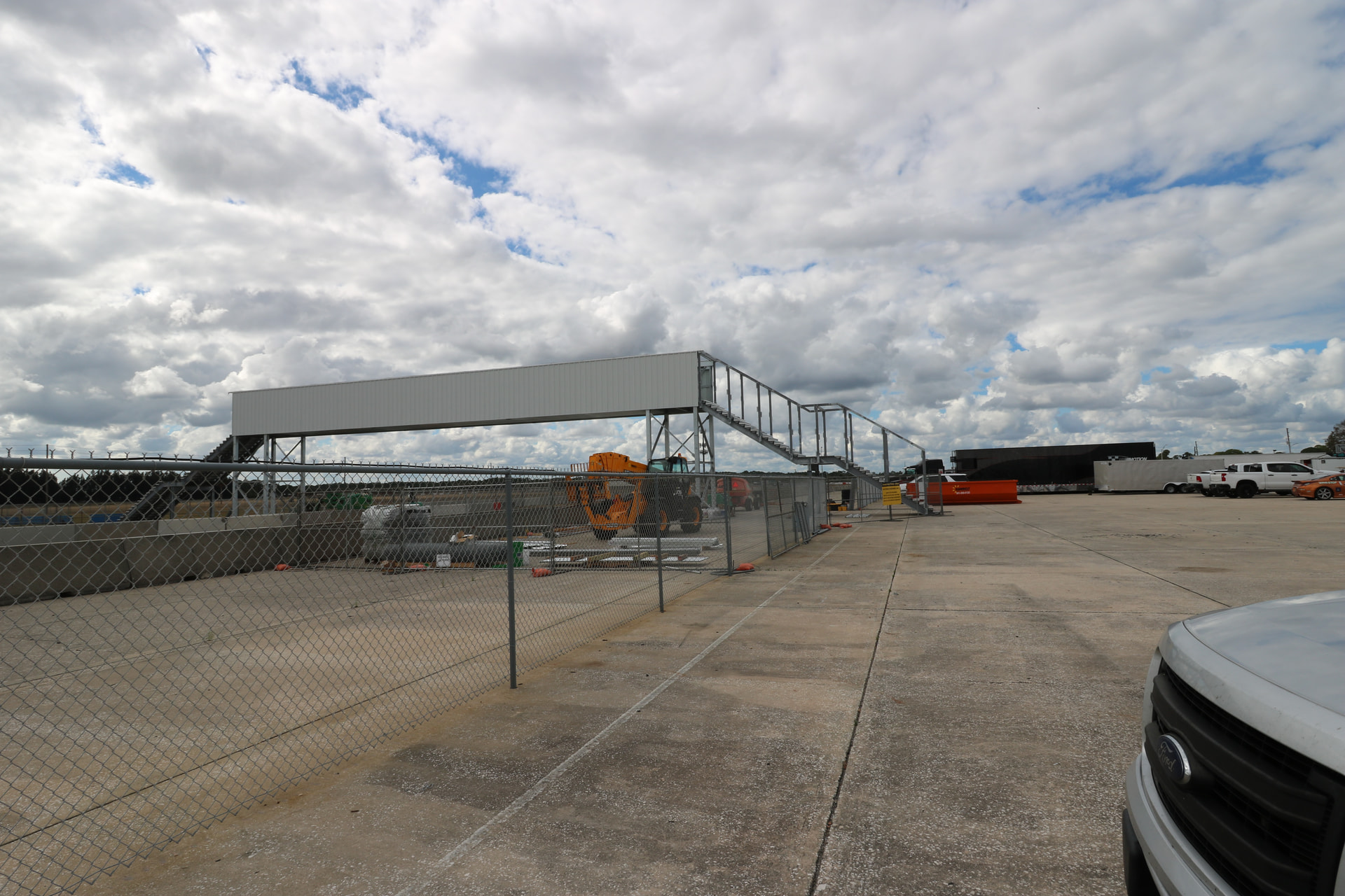 New cross over bridge being built in the pro paddock across the back straight away for fans. A whole new viewing area is being set up on the opposite side of the back straight. A new viewing tower has been erected at turn 16 driver’s left